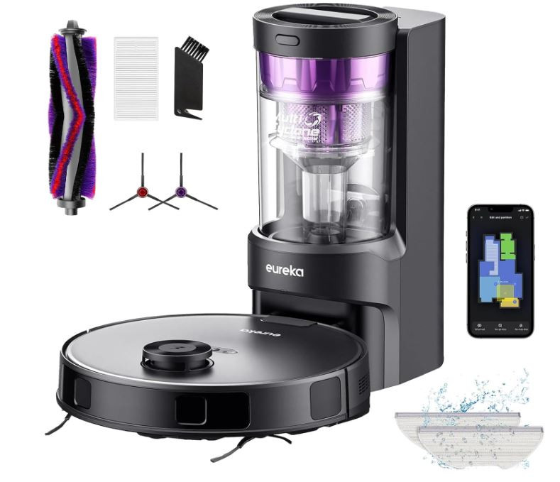 Termékleírás – EUREKA E10s DE Robotporszívó és Felmosó + Porzsák nélküli Multi-Cyclone Szívóállomás