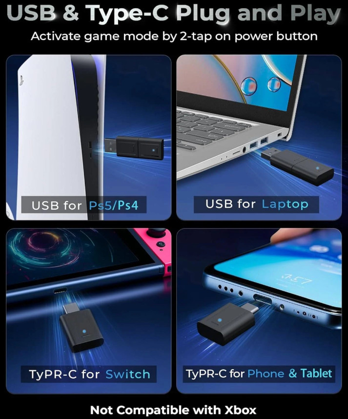 • 2,4Ghz vezeték nélküli adapterrel (USB-A és C)